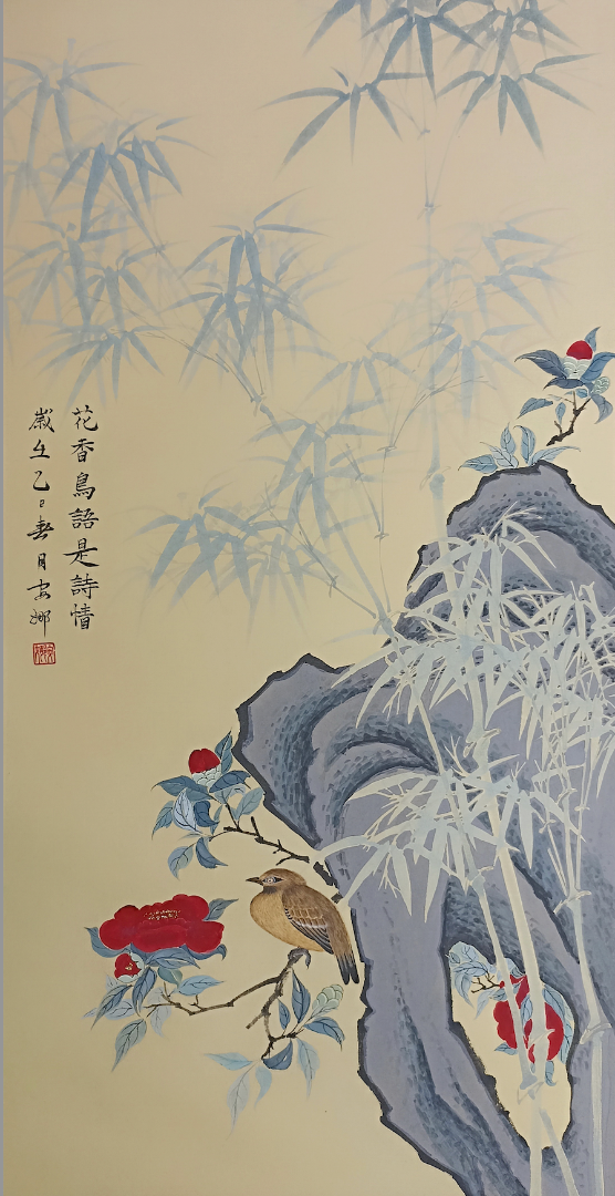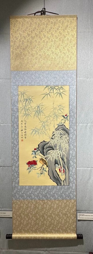 По мотивам картины Ван У. Рисовая бумага, тушь, минеральные краски. С 25.12.2025 по 25.01.26 картина представлена на выставке "100 пионов" в рамках Седьмого Фестиваля китайской живописи, проходящего в Музее Востока в Москве.