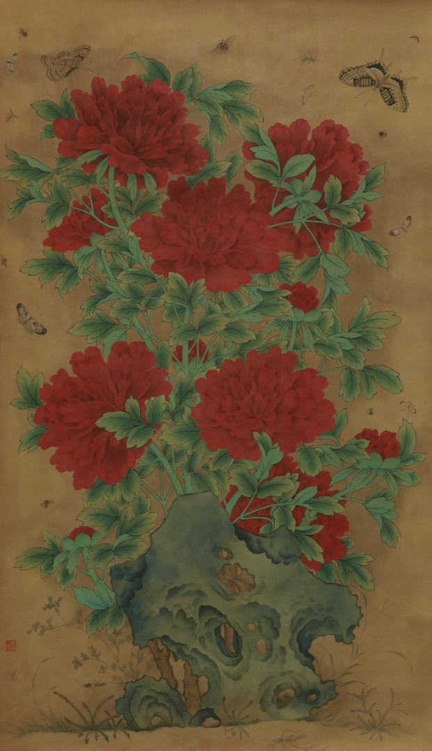 Шелк, минеральные краски, тушь. С 25.12.2025 по 25.01.26 картина представлена на выставке "100 пионов" в рамках Седьмого Фестиваля китайской живописи, проходящего в Музее Востока в Москве.