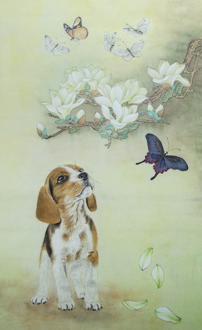 Рисовая бумага, тушь, минеральные краски. С 25.12.2025 по 25.01.26 картина представлена на выставке "100 пионов" в рамках Седьмого Фестиваля китайской живописи, проходящего в Музее Востока в Москве.
