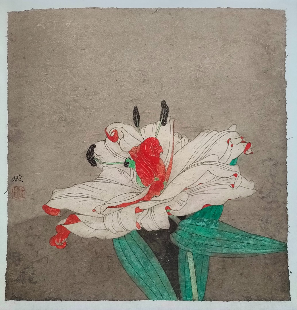 Рисовая бумага, тушь, минеральные краски. С 25.12.2025 по 25.01.26 картина представлена на выставке "100 пионов" в рамках Седьмого Фестиваля китайской живописи, проходящего в Музее Востока в Москве.