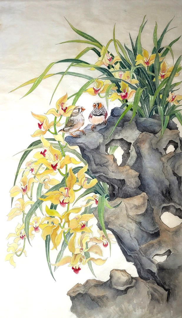 Рисовая бумага, тушь, минеральные краски. С 25.12.2025 по 25.01.26 картина представлена на выставке "100 пионов" в рамках Седьмого Фестиваля китайской живописи, проходящего в Музее Востока в Москве.