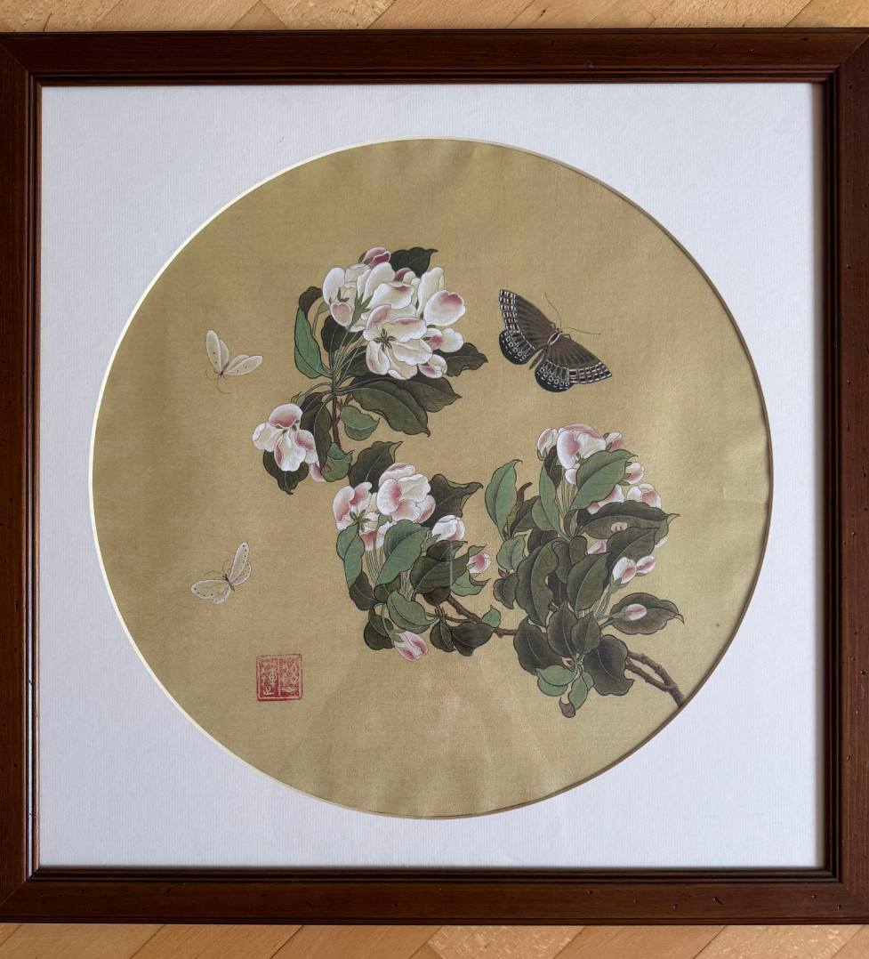 Размер картины - диаметр 35 см, размер картины с рамой - 50х50. Год создания 2018. Копия картины династии Сун. Шелк, тушь, минеральные краски.