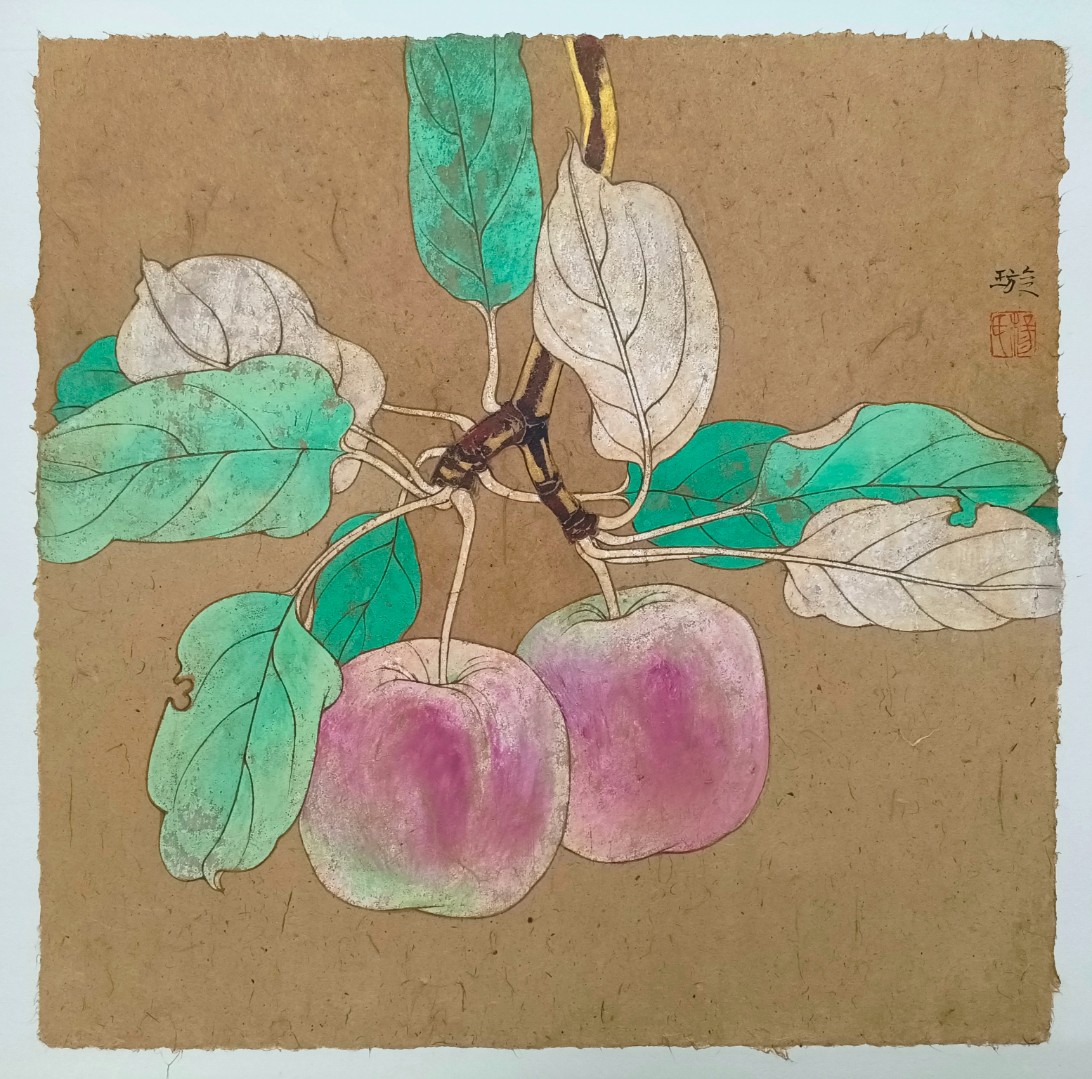 Рисовая бумага, тушь, минеральные краски. С 25.12.2025 по 25.01.26 картина представлена на выставке "100 пионов" в рамках Седьмого Фестиваля китайской живописи, проходящего в Музее Востока в Москве.